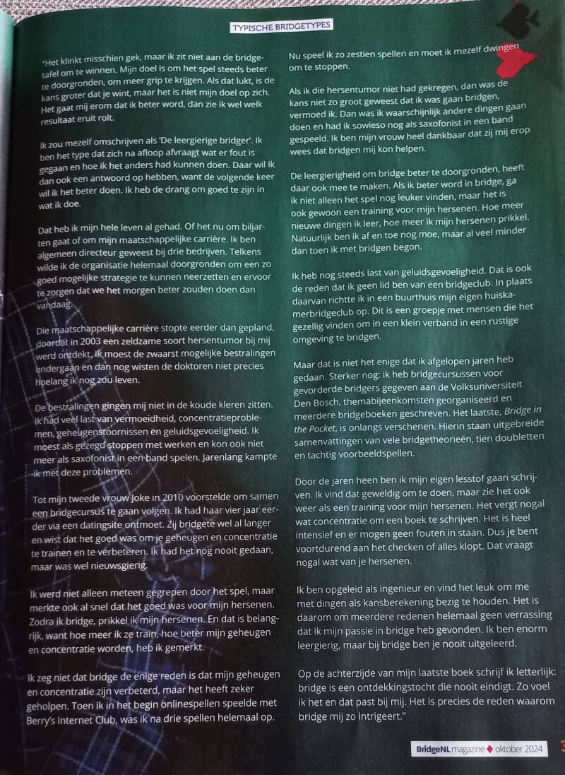 hieronder enkele afbeeldingen en het interview in het blad Bridgenl van de Nederlandse Bridge Bond oktober 2024
