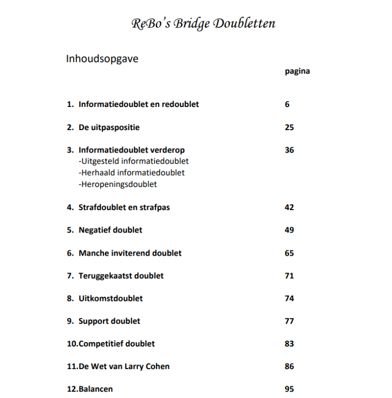 Hieronder volgt een aantal pagina's uit ReBo's Bridge Doubletten