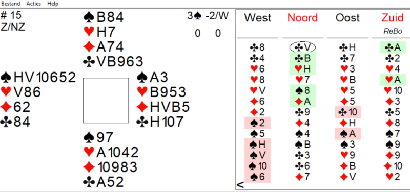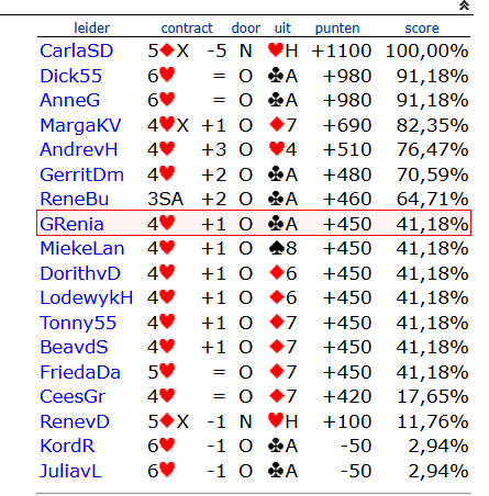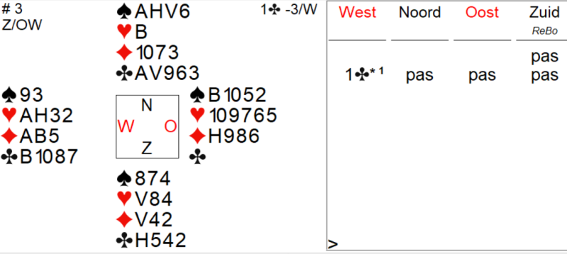 West had 2 klaveren moeten bieden ipv een 2 harten reverse. Oost-west hadden dan een score van bijna 90% gehad. Nu hebben ze een score van maar 30%!